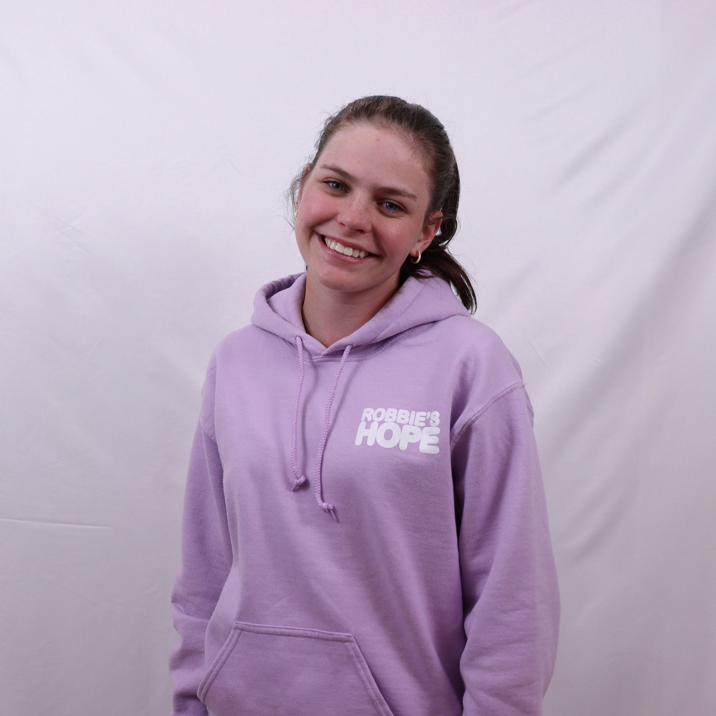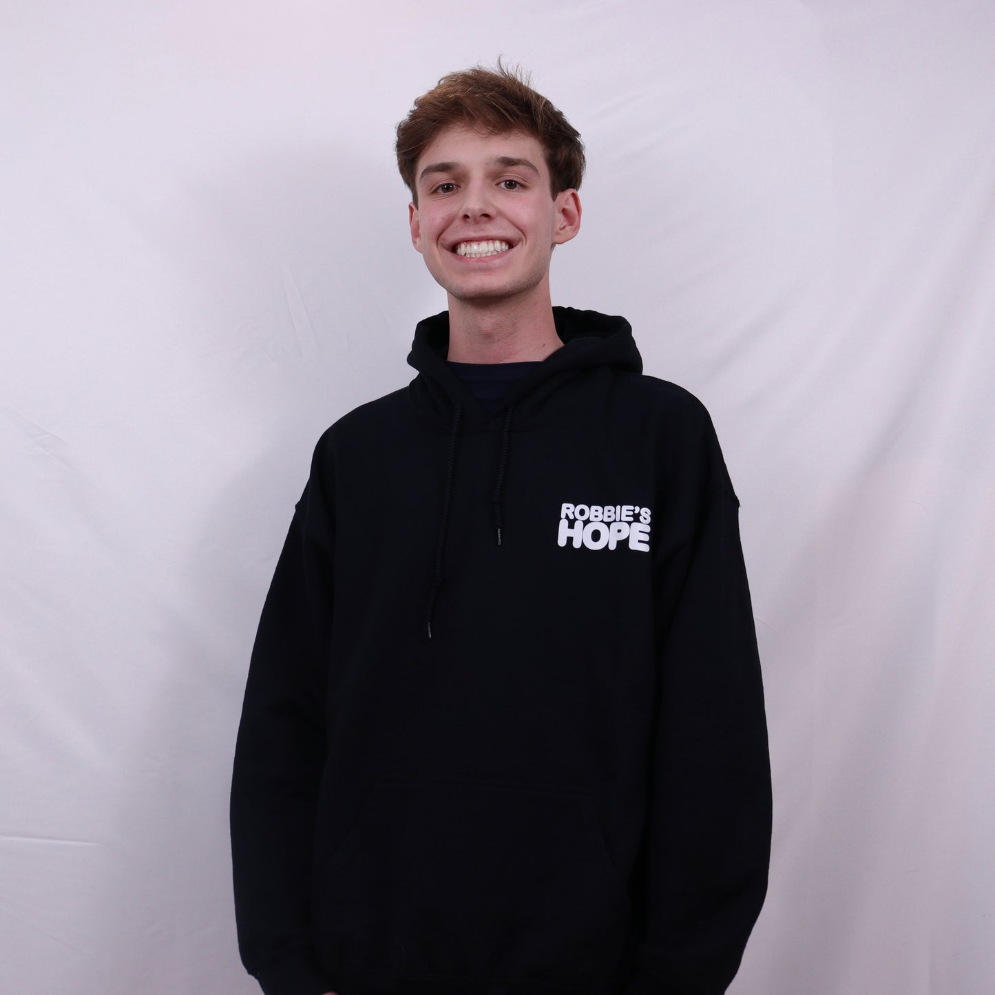 Smiley face logo on back with Robbie's Hope on the front