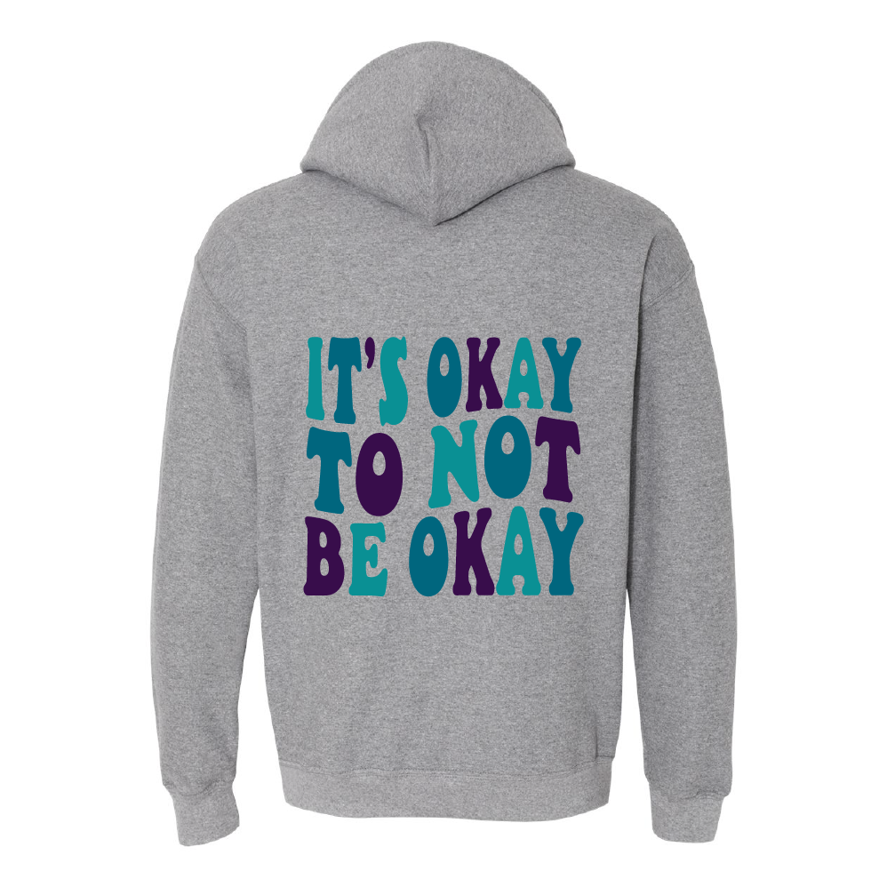 Its Okay to Not Be Okay on the back and Stay Positive logo on the front